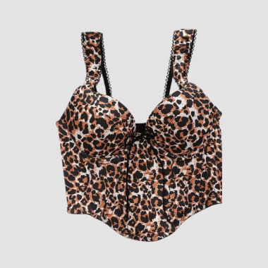 Adoptez ce corset léopard pour un style tendance ! Profitez du motif léopard de ce corset pour obtenir un look chic, à la mode et différent. Ce modèle offre une allure cintrée, en modifiant la taille et en soutenant la poitrine. Style : Corset Bustier Sexe : Femme Caractéristiques : Décolleté en coeur Couleur : Léopard