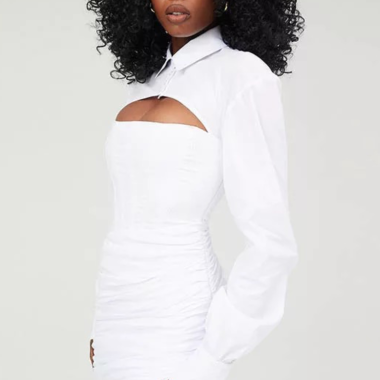 Adoptez cette superbe robe style corset blanche Nous vous proposons cette superbe robe style corset de couleur blanche qui affine la taille en vous donnant une allure vraiment séduisante. Ses manches longues apportent une touche d’élégance à votre style. Son col chemise à bouton est chic et sera parfait pour celles qui recherchent un look…
