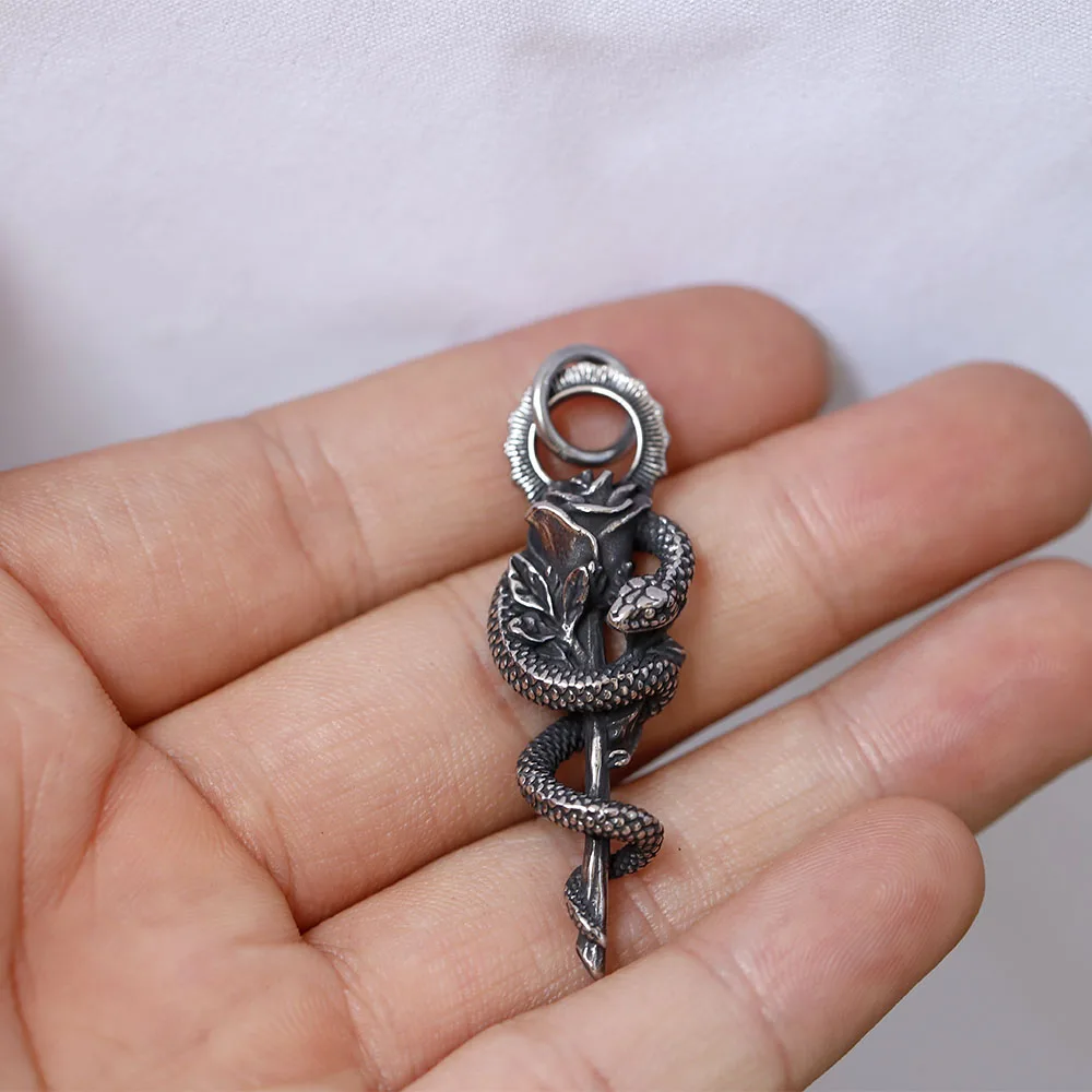 Collier pendentif fleur et serpent en acier