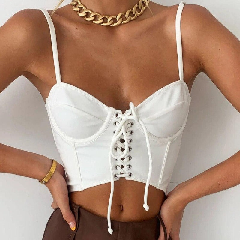 Comme un corsage, ce bustier vient se positionner autour de votre buste, en lui donnant un charme irrésistible. Un vêtement munis de lacet à l’avant, afin de provoquer un style moderne et vintage, ce qui est parfait pour vos sorties quotidiennes !