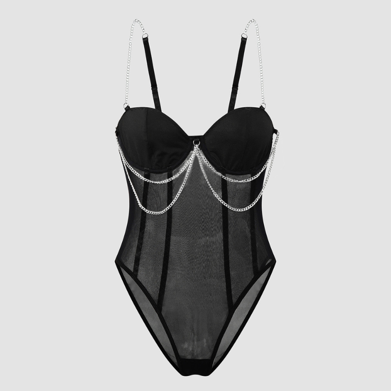 Le corset affine le tour de taille grâce à ses tiges verticales. Le body enveloppe le haut du corps et offre une silhouette élégante.