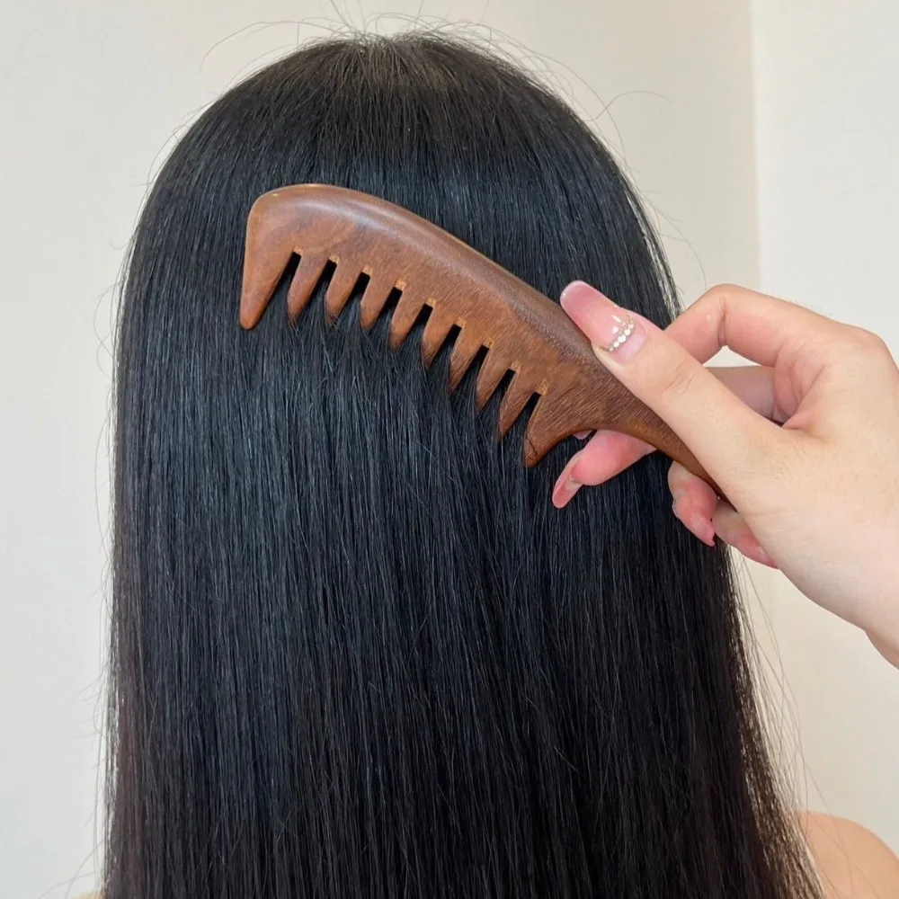 Les peignes en bois sont particulièrement appréciés car ils répartissent les huiles naturelles et réduisent les frisottis.