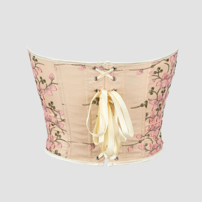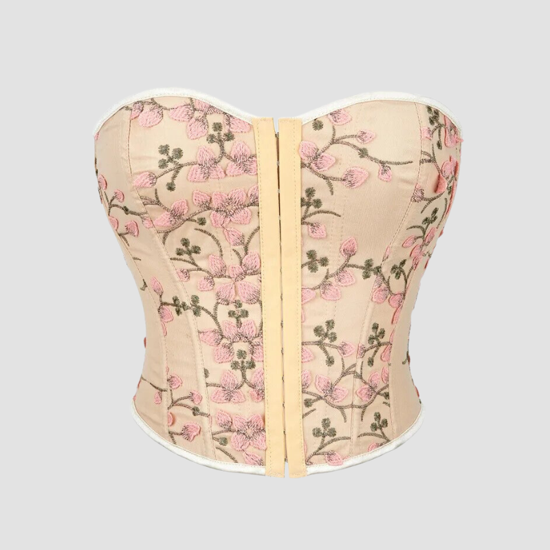 Top Corset Bustier Beige à Fleurs
